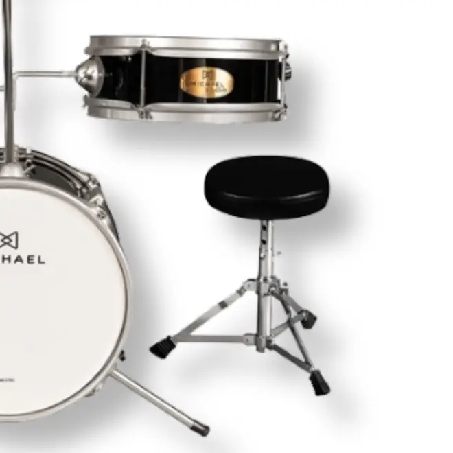 A bateria infantil Michael Club MDMC3 BK é um instrumento musical projetado para proporcionar uma experiência musical leve e divertida às crianças. Com um casco em Poplar de 6 folhas e acabamento em celuloide, esta bateria possui um tom de 08”x 05” com 3 afinações, caixa de 10”x 04” com 4 afinações, bumbo de 12” x 10” com 8 afinações, estante reta embutida no bumbo, pedal de bumbo com batedor de feltro e banco acolchoado. Além disso, acompanha um prato crash e um par de baquetas, garantindo uma experiência completa e de qualidade para os pequenos músicos.