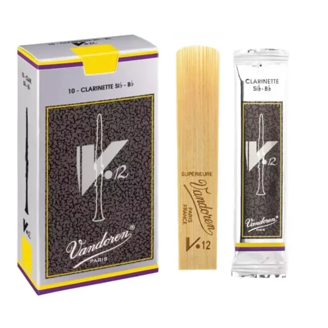 As palhetas V•12 vibram em uma faixa mais longa do que as palhetas tradicionais e proporcionam um som rico e profundo As palhetas V•12 para clarinete Bb são cortadas de tubos de palheta com diâmetro equivalente ao usado para palhetas de saxofone alto.